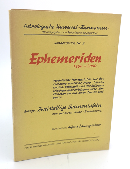 Baumgartner, Alfons (Berechnung): Ephemeriden 1850-2000 [zur Berechnung …]. Verlag Baumgartner, Warpke o.J. (um 1950). 52 S. OKarton.