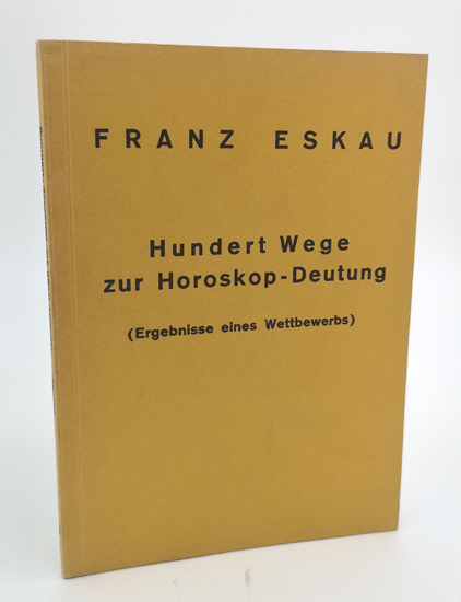 Astrologische Universal Harmonien. Sonderdruck 58. – „Der Großkaufmann Eskau hatte einen Preis für die beste Deutung eines veröffentlichten Horoskopes ausgesetzt. Aus der großen Zahl der Lösungen an den Baumgartner-Verlag werden hier die interessantesten 100 Wege zur Deutung dargelegt“. – Ein gutes Exemplar.
