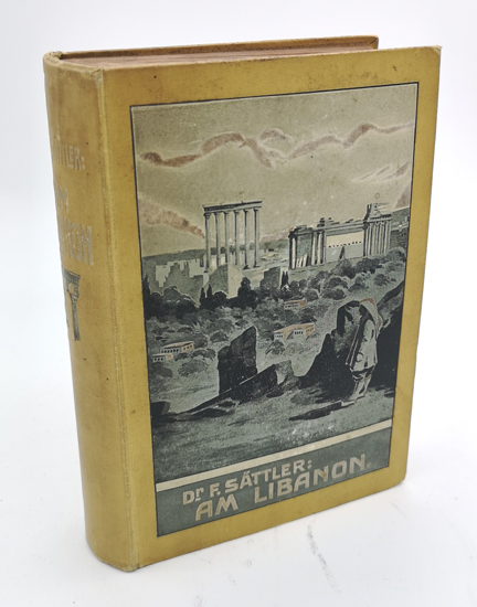 Sättler, Dr. Franz: Am Libanon. Verlagsdruck von E. Bartels, Berlin-Weißensee o.J. [1912]. Mit zahlreichen Textabbildungen (Photographien und Zeichnungen). 733 S., 1 (w) illustr. OLwd., 3-seitiger Farbschnitt in Rot.