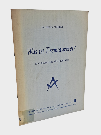 Posner, Oskar: Was ist Freimaurerei? (Eine Belehrung für Suchende). Bauhütten-Verlag GmbH, Frankfurt-Main o.J. 12 S. OKarton.