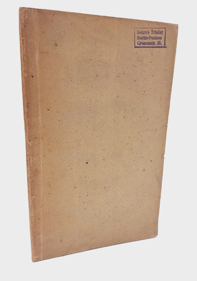 Slg. Du Prel 726. – Exemplar aus der Sammlung von Heinrich Tränker. Deckel und Titelblatt mit kl. Stempel von Tränker. Knapp beschnitten. Der Umschlag leicht gebräunt und fleckig. Papier teilweise gebräunt und stock- bzw. braunfleckig. Selten.