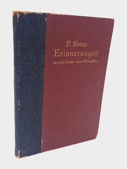 Braun, Dr. phil. P[eter]: Erinnerungen aus dem Leben eines Okkultisten. Verlag von F[riedrich] E[duard] Baumann, Bad Schmiedeberg und Leipzig o.J. [1920]. 139, 1 (w), 4 S. Vlgs.-Anz. OPappband mit goldgeprägtem Rücken- und Deckeltitel.
