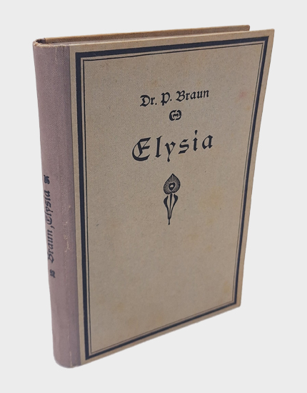Braun, Dr. phil. P[eter]: Elysia, Die Hüterin des Ewigen Lichtes. Erlebnisse eines Verschollenen unter den Johannitischen Christen einer längst versunkenen Insel, welche behaupten, die reine, unverfälschte Lehre Jesu von ihren Vätern erhalten zu haben. Verlag von F[riedrich] E[duard] Baumann, Bad Schmiedeberg und Leipzig o.J. [1912]. 277, 1 (Nachsatz), 1 Bl. Vlgs.-Anz. OHLwd.