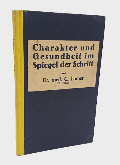 Lomer, Dr. med. Georg [Heinrich]: Charakter und Gesundheit im Spiegel der Schrift. Verlag “Das Wissen dem Volke” Otto Uhlmann, Siegmar-Chemnitz o.J. [1922]. 1.-5. Tausend. Mit 103 Textfiguren. 74 S. Priv. HLwd. mit Autor u. Titel v. OUmschlag montiert.