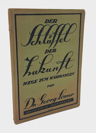 Lomer, Dr. Georg [Heinrich]: Der Schlüssel der Zukunft. Wege zum Wahrsagen. Orania-Verlag, Oranienburg [bei Berlin] 1923. Kl.-8°. 85 S., [1], 1 Bl. Vlgs.-Anz. OKarton.