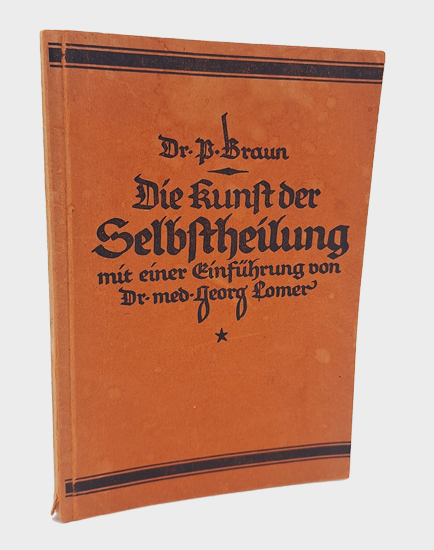 Braun, Dr. P[eter]: Die Kunst der Selbstheilung. F[riedrich] E[duard] Baumanns Verlag / Lothar Baumann, Bad Schmiedeberg und Leipzig 1926. Zweite verbesserte Auflage, bearbeitet und mit einer Einführung versehen von Dr. med. Georg [Heinrich] Lomer. XIII, [1], 1, [1] w., 68, [1], 3 S. Vlgs.-Anz. OKarton.
