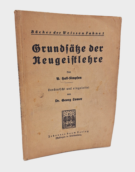 Hall-Simpson, A.: Grundsätze der Neugeistlehre. Johannes Baum Verlag, Pfullingen in Württ. o.J. [1922]. Deutsche Ausgabe besorgt und eingeleitet von Dr. Georg Lomer. 43 S. OKarton.
