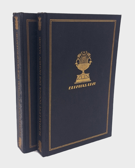 Levi, Eliphas [Pseudonym] = Abbé Alphonse Louis Constant: Dogma und Ritual der Hohen Magie. [2 Bde.]. Otto Wilhelm Barth-Verlag G.M.B.H., Wien / München-Planegg / Leipzig 1927. 272 S., 341 S. OLwd. Bde. mit Deckelgoldprägung u. goldgeprägtem Rückentitel.