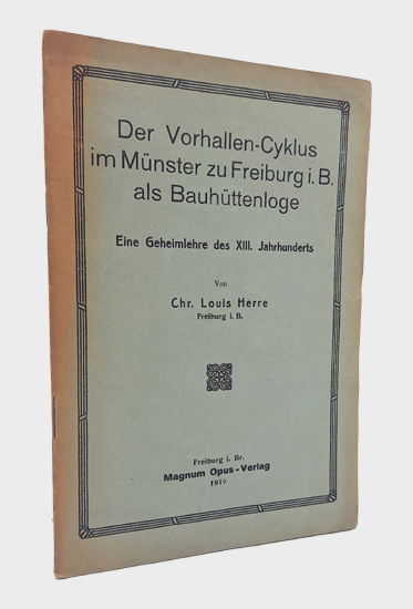 Herre, Chr[istian] Louis: Der Vorhallen-Cyklus im Münster zu Freiburg i. B. als Bauhüttenloge. Eine Geheimlehre des XIII. Jahrhunderts. Magnum Opus-Verlag, Freiburg i. Br. 1919. Gr.-8°. 24 S. OKarton.