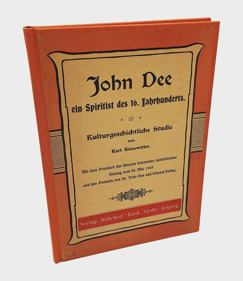 Kiesewetter, Carl [Karl]: John Dee, ein Spiritist des 16. Jahrhunderts. Kulturgeschichtliche Studie. Mit dem Protokoll der ältesten bekannten spiritistischen Sitzung vom 28. Mai 1583 und den noch nicht veröffentlichten Portraits von Dr. John Dee und Edward Kelley. Verlag “Wahrheit” (Ferd. Spohr), Leipzig [1893]. 79, [1] Verlagsanzeigen. Neuerer Leinenband mit aufgezogener OBroschur.