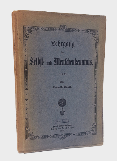 Theophrastus (Ps.) = Leopold Engel: Lehrgang der Selbst- und Menschenkenntnis. Verlag von Karl Rohm, Lorch (Württemberg) 1910. 208 S., 14 S. Vlgs.-Anz., 1 Bl. OKarton.