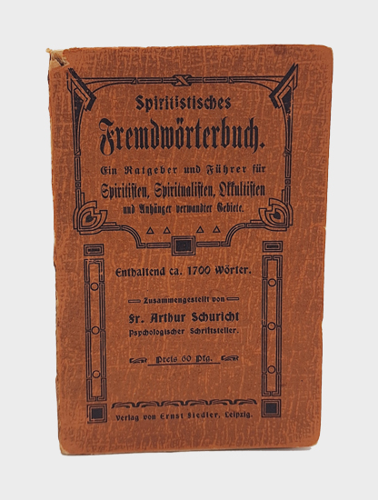 Schuricht, Fr. Arthur (Zusammenstellung): Spiritistisches Fremdwörterbuch. Ein Ratgeber und Führer für Spiritisten, Spiritualisten, Okkultisten und Anhänger verwandter Gebiete. Verlag von Ernst Fiedler, Leipzig o.J. [um 1915]. 12°. 71 S., 2 Bl. Vlgs.-Anz.OKarton.