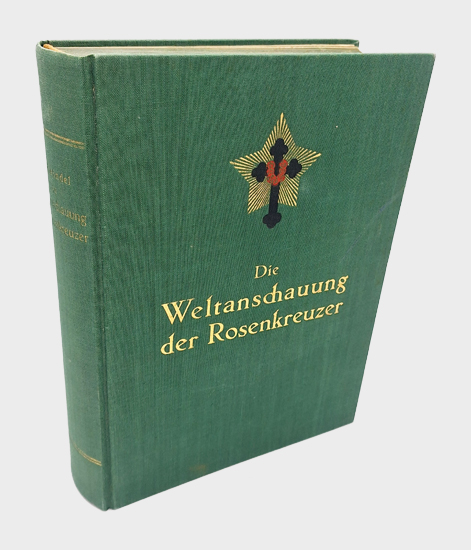 Die Weltanschauung der Rosenkreuzer oder Mystisches Christentum. Eine elementare Abhandlung über die vergangene Entwicklung, die gegenwärtige Wesenheit und die künftige Entfaltung der Menschheit. Theosophisches Verlagshaus Dr. Hugo Vollrath, Leipzig o.J. [1921]. 4° [258 x 195 mm]. Übertragen von S. von der Wiesen. Mit Abbildungen und Diagrammen, teilw. farbig. 1 Bl. (Tafel), 601 S., [1] Vlgs.-Anz. OLwd. mit reicher Goldprägung.