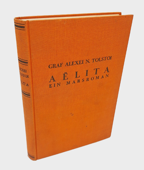Tolstoi, Graf Alexei N[ikolajewitsch]: Aëlita. Ein Marsroman. Allgemeine Verlagsanstalt, München 1924. Deutsch von Alexander Eliasberg. 255 S. OLeineneinband mit Prägung auf Rücken- und Deckel.