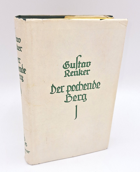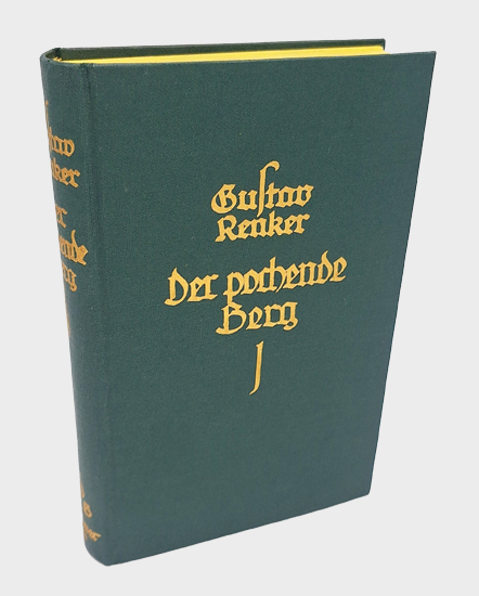 Renker, Gustav: Der pochende Berg. / Das verlorene Ich. / Die Rute des Bunduteufels. Im Verlag „Das Bergland-Buch“, Graz 1931. Eingeleitet von Marion Halvorsen. 1 Bl., 295 S., 3 Bl., 1 (w). Grünes OLwd. mit Goldprägung und OUmschlag.