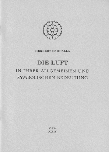 Czogalla, Herbert: Die Luft in ihrer allgemeinen und symbolischen Bedeutung. ORA Verlag, München 1967. 1 Bl., 34 S. OKarton.