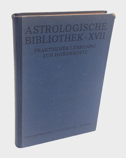 Praktischer Lehrgang zur Horoskopie nebst Deklinationen der Wandelsterne von 1851-1923. Theosophisches Verlagshaus, Leipzig [1922]. 264 S. OHLwd.