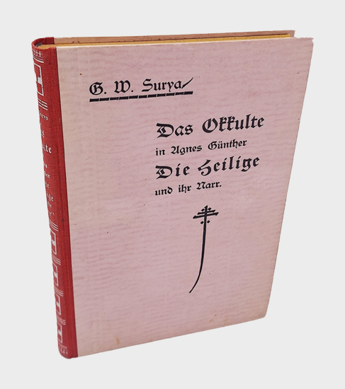 Surya, G. W. (Ps.) = Demeter Georgiewitz-Weitzer: Das Okkulte in Agnes Günther. „Die Heilige und ihr Narr“ erläutert an zahlreichen, ähnlichen wohlbeglaubigten Tatsachen und eigenen übersinnlichen Erlebnissen des Verfassers. Renatus-Verlag, Lorch (Württemberg) 1929. Zweite, verbesserte und erweiterte Auflage. 220 S., 8 Bl. Vlgs.-Anz. OHLwd.