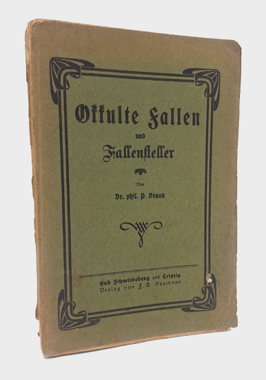 Braun, Dr. phil. P[eter]: Okkulte Fallen und Fallensteller. Verlag von F[riedrich] E[duard] Baumann, Bad Schmiedeberg und Leipzig o.J. [1907]. 78, [2] S. Vlgs.-Anz. OKarton.