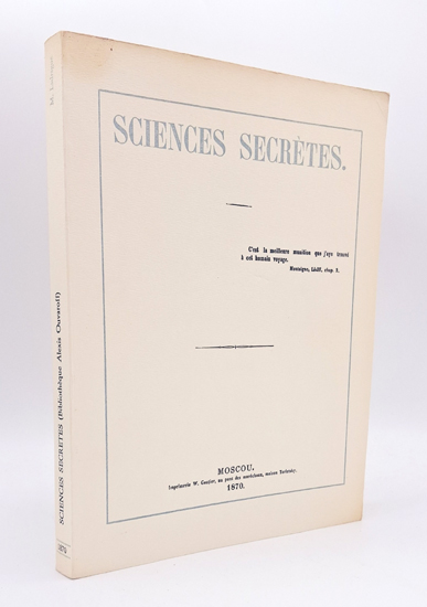 Ladrague A. (Hrsg.): Sciences Secrètes. Bibliothèque Ouvaroff. Catalogue Spécimen. Gutemberg Reprint, Paris 1980. 4°. IX, 1 Bl., 217 S., 2 Bl. OKarton.