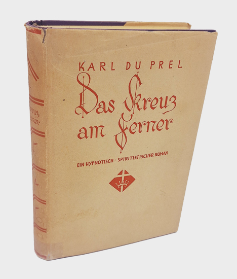 Du Prel, [Freiherr] Dr. Carl: Das Kreuz am Ferner. Ein hypnotisch – spiritistischer Roman. J. G. Cottas’sche Buchhandlung Nachfolger, Stuttgart und Berlin 1928. 13. und 14. Tausend. 1 (w), XI, 547 S., 2 Bl. Vlgs.-Anz. Goldgepr. OHLwd. (Feinleinen) mit OUmschl.