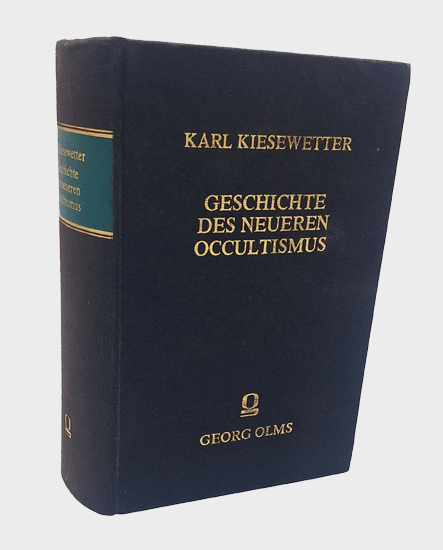 Kiesewetter, Karl: Geschichte des neueren Occultismus. Geheimwissenschaftliche Systeme von Agrippa von Nettesheim bis zu Carl du Prel. Georg Olms Verlag, Hildesheim, Zürich, New York 1977. 2 Bl., XII, 910, 60 S., 1 (w) OLwd. mit Goldprägung.