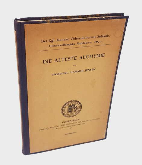 Hammer Jensen, Ingeborg: Die älteste Alchymie. Hovedkommissionær: Andr. Fred. Høst & Søn, Kgl. Hof-Boghandel Bianco Lunos Bogtrykkeri, København 1921. 159 S. Priv. Leineneinband mit aufgezogener OBroschur.
