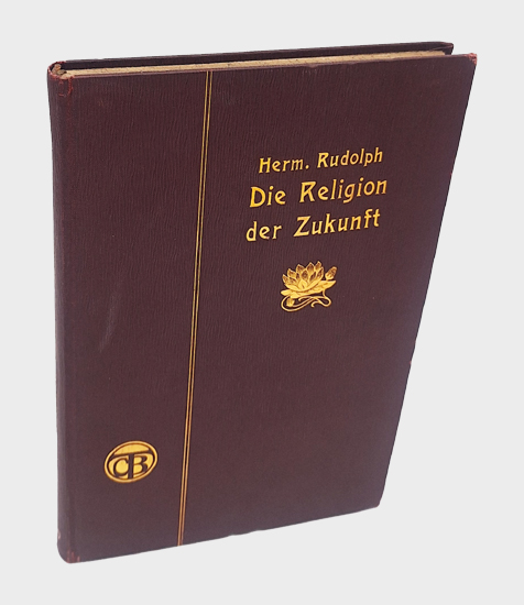 Rudolph, Hermann: Die Religion der Zukunft. Theosophische Central-Buchhandlung, Leipzig o.J. [1904]. 4 Bl., 204 S. Priv. HLwd. der Zeit.