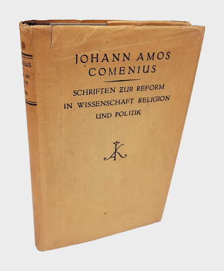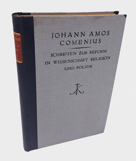 Comenius, Johann Amos: Ausgewählte Schriften zur Reform in Wissenschaft, Religion und Politik. Alfred Kröner Verlag, Leipzig 1924. Übersetzt und bearbeitet von Herbert Schönebaum. LV, [1] w., 226 S., 1 Bl. OHLwd. mit OUmschlag.