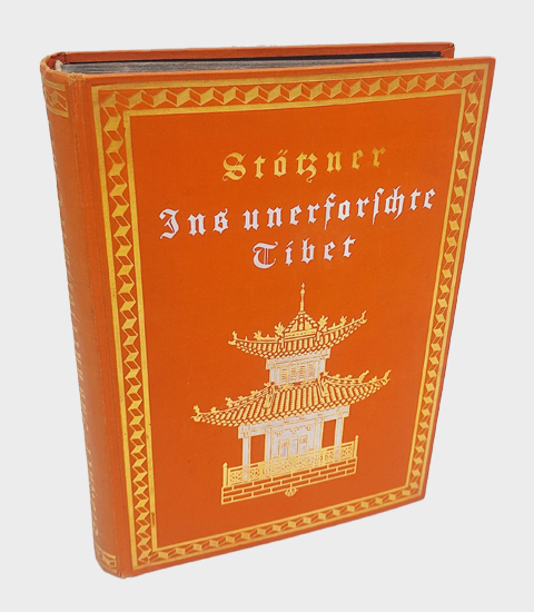 Stötzner, Walther: Ins unerforschte Tibet. Tagebuch der deutsche Expedition Stötzner 1914. Verlag von K. F. Koehler, Leipzig 1924. Mit Porträtfrontispiz, 145 Abbildungen, 1 Falttafel u. 2 Karten. XVI, 316, [8] S. OLwd. mit reicher Gold- und Weißprägung.