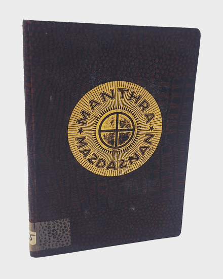 Manthra. Avesta im Lied und Gebet. Mazdaznan Verlag und Versandhaus GmbH, Leipzig, 1927. 6. bis 10. Auflage. 152 S. OLwd. mit Goldprägung.