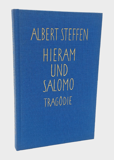 Steffen, Albert: Hieram und Salomo. Tragödie in neun Bildern. Verlag für schöne Wissenschaften, Dornach/Schweiz 1983. Vierte Auflage. 105 S., 2 Bl., 1 (w). OLwd. mit Rücken- und Deckelgoldprägung.