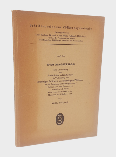 Hellpach, Willy: Das Magethos. Eine Untersuchung über Zauberdenken und Zauberdienst als Verknüpfung von jenseitigen Mächten und diesseitigen Pflichten für die Entstehung und Befestigung von Geltungen und Setzungen, Brauch und Recht, Gewissen und Gesittung, Moralen und Religionen. Hippokrates-Verlag Marquardt & Cie, Stuttgart 1947. Gr.8°. 96 S. OKarton.