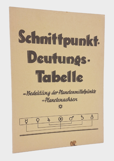 Schnittpunkt-Deutungs-Tabellen. Bedeutung der Planetenmittelpunkte = Planetenachsen. Verlag Hans Baumgartner, Warpke, Post Billerbeck / Hann. o.J. (um 1956). 60 S. illustr. OKarton.