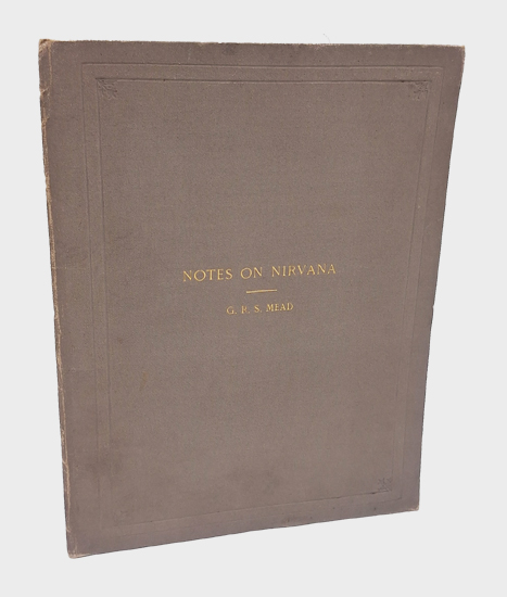 Mead, G[eorge] R[obert] S[tow]: Notes on Nirvana. (Reprinted from “Lucifer”). Theosophical Publishing Society, London 1893. 4° [253 x 198 mm]. 28 S. Original linen with gold embossed cover.
