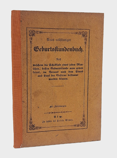 Die Enthüllung des menschlichen Lebens, oder neues vollständiges Geburtsstundenbuch, nach welchem die Schicksale eines jeden Menschen, dessen Geburtsstunde man genau kennt, im Voraus bestimmt werden können. Zu haben bei Fried. Ebner, Ulm 1853. Mit Abbildungen. 160 S. OKarton.
