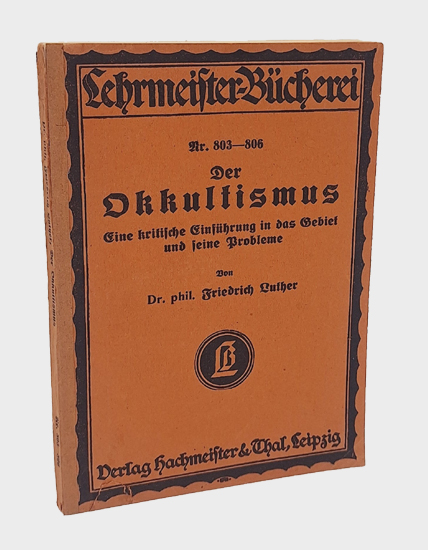Luther, Dr. phil. Friedlich: Der Okkultismus. Eine kritische Einführung in das Gebiet und seine Probleme. Verlag Bachmeister & Thal, Leipzig 1926. Kl.-8°. 109, [1] S., 1 Bl. OKarton.