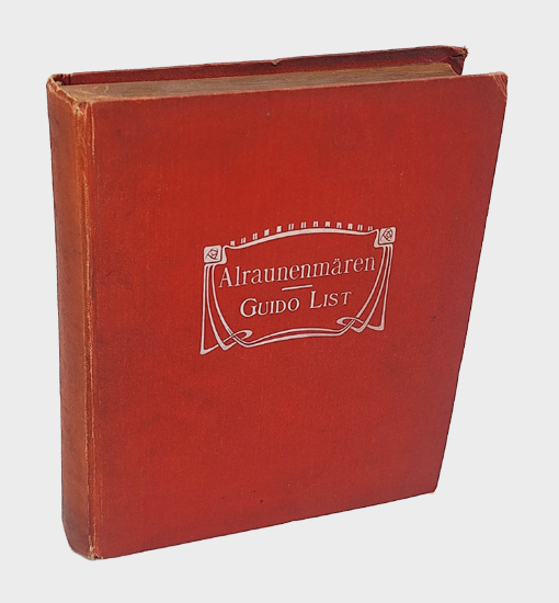 List, Guido: Alraunenmären. Oesterreichische Verlagsanstalt, Linz-Wien-Leipzig o.J. [1903]. 1 Bl. (Frontispiz), 415, [1] w. S., 2 Bl. (Inhalt u. Werke). OLwd. im Jugendstil.