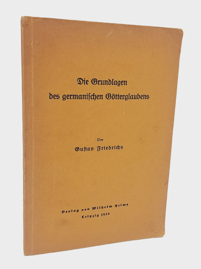 Friedrichs, Gustav: Die Grundlagen des germanischen Götterglaubens. Verlag von Wilhelm Heims, Leipzig 1934. Gr.-8°. Mit 11 Abbildungen auf 8 Tafeln. 127, [1] S., 4 Bl. (Tafeln). OKarton.