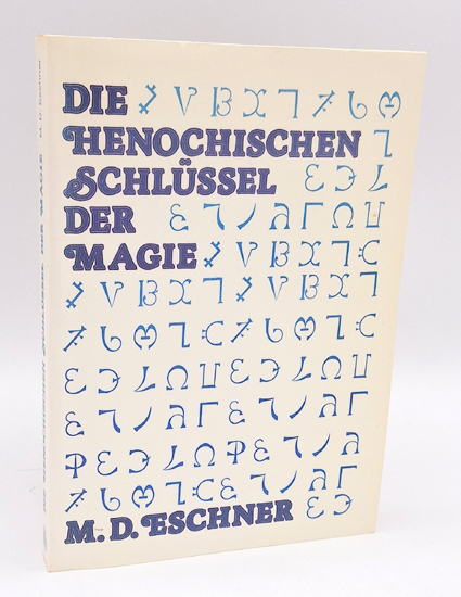 Eschner, Michael D[ietmar]: Die Henochischen Schlüssel der Magie. Peyn und Schulze Verlag und Versand, Bergen/Dumme 1989. Neu üerarbeitete und stark erweiterte Auflage. Mit 24 Abbildungen und zahlreichen Figuren und Tabellen im Text. [2] w., 294, [7], [1] w. S. Illustrierte OKartonage.