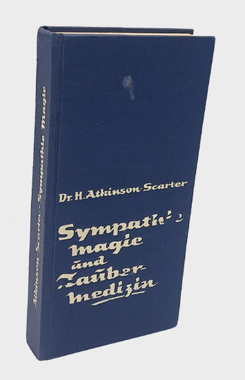 Atkinson-Scarter, Dr. H[ans]: Sympathie-Magie und Zaubermedizin. Ein Handbuch zur magischen Krankheitsbehandlung. Verlag Richard Schikowski, Berlin 1960. Schmal-8°. 198, [2] w. S. Blauer OLeinwand-Band mit weißgeprägtem Rücken- und Deckeltitel.