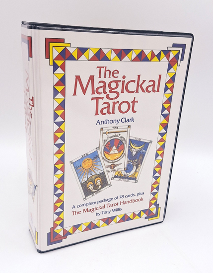 The Magickal Tarot. A complete package of 78 cards, plus The Magickal Tarot Handbook by Tony Willis [cover-title of the box]. The Aquarian Press, An Imprint of HarperCollinsPublishers [Aquarian/Thorsons], London 1992. With illustrations in the text. 192 S. Color illustrated cardboard. – And: 78 coloured Tarot Cards by Anthony Clark. [120 x 80 mm]. In color illustrated original plastic case.