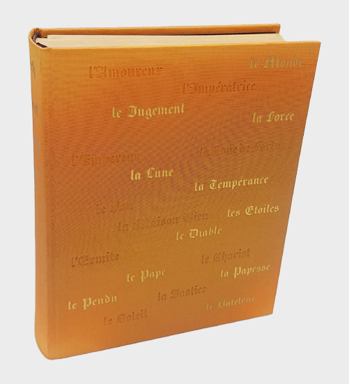 Wirth, Oswald: Le Tarot des imagiers du Moyen Age. Claude Tchou, Éditeur, pour Cercle du Livre Précieux [Paris] 1966. Préface de Roger Caillois. Avec nombreux illustrations dans le texte et 1 planche dépliante. 377, [4], [3] w. S. Reliure originale en soie avec titre doré au dos et dorure sur les plats, couverture originale en film transparent. Avec 22 cartes en couleur [132 x 70 mm] comme supplément détaché dans une poche sur la couverture intérieure arrière.