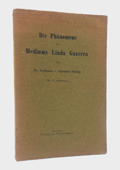 Schrenck-Notzing, Dr. [August] Freiherrn v.: Die Phänomene des Mediums Linda Gazerra. Verlag von Oswald Mutze, Leipzig o.J. [um 1912]. Mit 13 Abbildungen. 43, [1] S. OKarton.