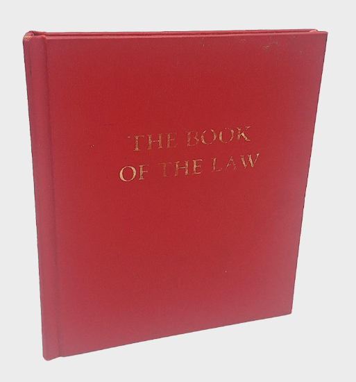 THE BOOK OF THE LAW [technically called LIBER AL vel LEGIS SUB FIGURA CCXX AS DELIVERED BY XCIII=418 TO DCLXVI]. Thelema Publications, Kings Beach, California 1981. 61, [1] S., 1 Bl. Red cloth with „THE BOOK OF THE LAW“ lettered in dull gilt across the front board and down the spine. Cream (pale yellow) endpapers, printed throughout on cream (pale yellow) paper stock.