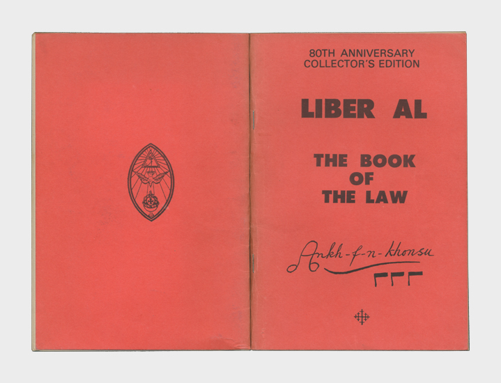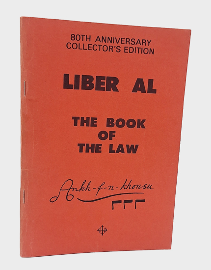 AL (Liber Legis) THE BOOK OF THE LAW sub figura xxxi as delivered by 93 – AIWASS – 418 to ANKH-F-N-KHONSU The Priest of the Princes who is 666. Heka-Baka Books, London [1984]. 1 (w), 52 S., 1 (w). Red stapled Softcover.