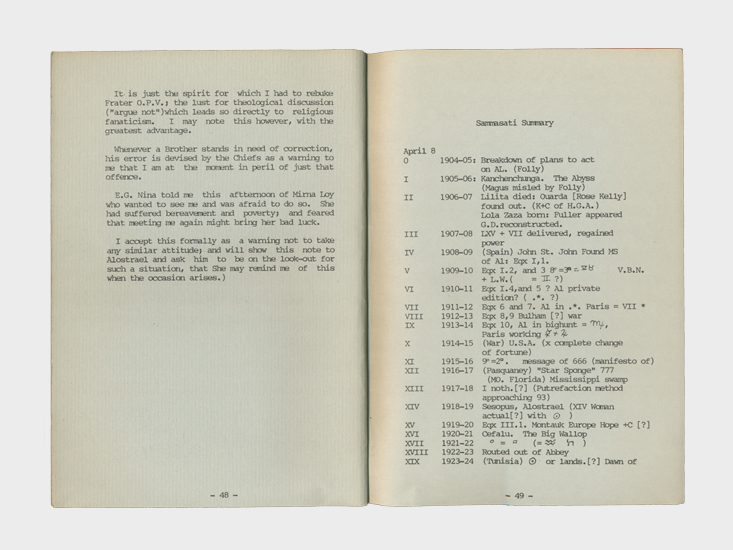 80th Anniversary Collector’s Edition. – Contains Liber OZ, Liber AL in text form, The Comment and a lengthy excerpt of Crowley’s diary from April 8, 1924, which also lists a „Sammasati Summary“ of notable April 8’s from 1904 to 1924. – Cover slightly rubbed and minimally bumped. „Spine“ slightly browned. Scarce.
