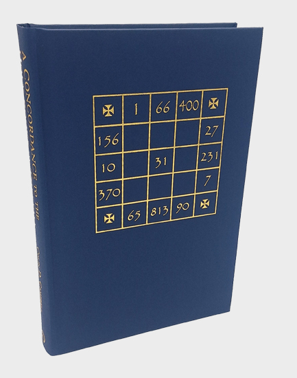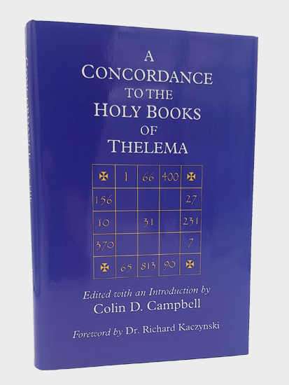 A Concordance to the Holy Books of Thelema. The Teitan Press, York Beach 2008. Gr.-8°. Edited with an Introduction by Colin Campbell. Foreword by Dr Richard Kaczynski. xxiii, [1] w., 347, 1 (w) S., 2 Bl. Blue cloth with gilt titling to spine and gilt magic square on front cover. With dustwrapper.