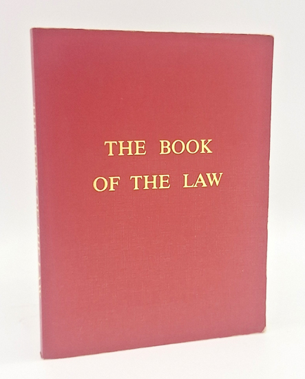 THE BOOK OF THE LAW [technically called LIBER AL vel LEGIS SUB FIGURA CCXX AS DELIVERED BY XCIII=418 TO DCLXVI]. Samuel Weiser, York Beach, Maine 1976. Kl.-8° [161 x 120 mm]. 50 S., 34 Bl., 4 (w) Bl. Softcover. Original bright red textured wrappers with with “THE BOOK / OF THE LAW” lettered in gilt across the front cover, and “THE BOOK OF THE LAW” similarly lettered down the spine.