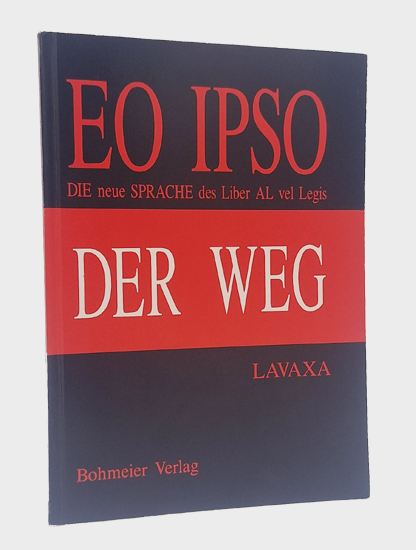 Umschlagtitel: Eo Ipso – Der Weg. DIE neue SPRACHE des Liber AL vel Legis. – “Eo Ipso – der Weg lüftet den Schleier ägyptischer Mystik und Magie den Aivass Text bis heute umgibt, indem es ihn durch eine neue Sprache verständlicher macht” (Umschlag). – Umschlag schwach berieben und gering bestoßen.
